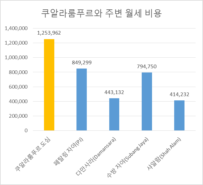 3. 쿠알라룸푸르의 주변 지역의 평균 월세